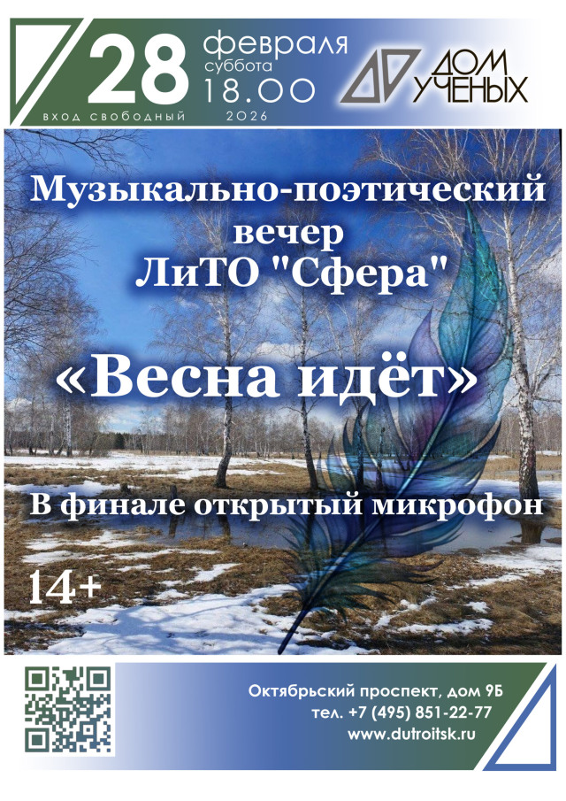 Главная › Анонс › Когда: 28 февраля 2026 года с 18:00 до 20:00. Стоимость:бесплатно. Ближайшие события → Поделитесь в соцсетях: